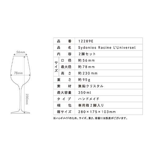 10%OFFクーポン配布中(自動反映)シドニオス ラシーヌ ルニヴェルセル [2脚入り] 350mlワイングラス