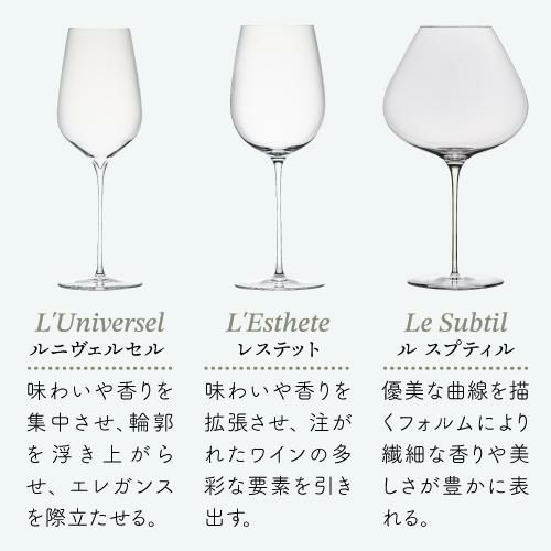 ラシーヌシリーズはシドニオスのグラスにおける、万能感あふれるスタンダードコレクション。ルニヴェルセルは味わいや香りを集中させ、輪郭を浮き上がらせ、エレガンスを際立たせる