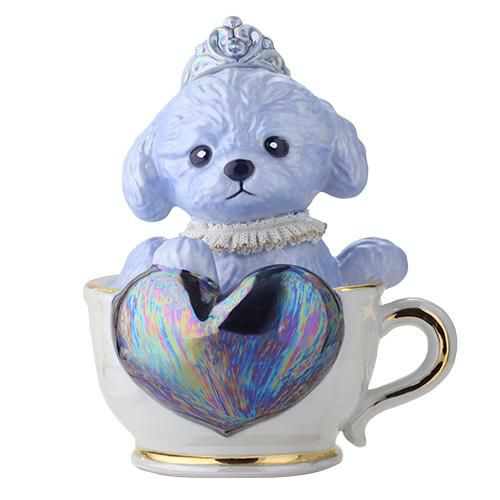 目を引く容器は日本製のハンドメイド陶器ボトル。完全手作業でブルーに色付けされたかわいらしいティーカッププードル。このプリンスは淡いブルーの色合いと首元の飾りがキュート。ピンクのプリンセスと一緒にご購入はいかがでしょうか。