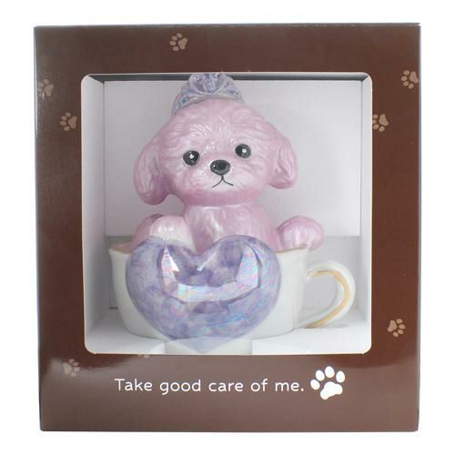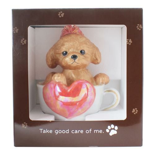 目を引く容器は日本製のハンドメイド陶器ボトル。完全手作業でに色付けされたかわいらしいティーカッププードル。