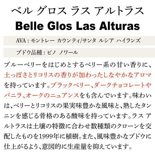 他の画像を見る クール便選択可 ジョー・ワグナーがオーナー兼醸造家を勤める単一畑! ベル グロス ラス アルトラス ピノワール 2021 750ml 赤ワイン アメリカ カリフォルニア モントレー サンタルチアハイランド AVA ケイマス 浜運 特別価格 ¥ 10,164 税込 お気に入りに追加