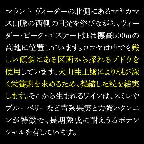 他の画像を見る クール便選択可 パーカーポイント100点獲得!ナパのカルトワイン カベルネ ソーヴィニヨン マウント ヴィーダー ナパ ヴァレー 2016ロコヤ 750mlアメリカ 辛口 赤ワイン 虎 特別価格 ¥ 115,500 税込 お気に入りに追加