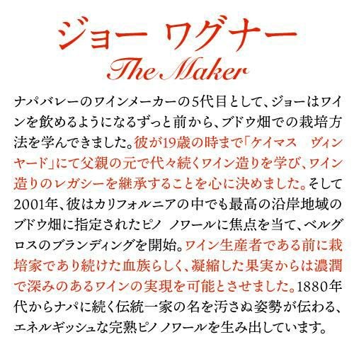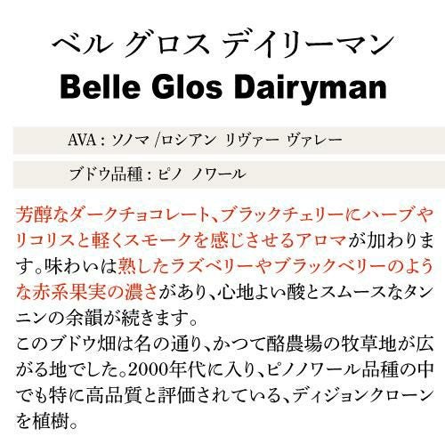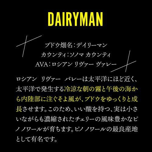1880年代から続くワイナリー。全ては単一畑とされ、ジョー・ワグナーがヘッドワインメーカーを務めています。「デイリーマン」とは「酪農家」の意。かつてこの地が酪農場であったことに由来。完熟熟したラズベリー、苺ジャムを思わせる風味が広がります。まさしく「ゴージャス」と言うべくたっぷりの味わいがあり、熟れたタンニンと豊かな果実味が長く余韻に響き渡ります。