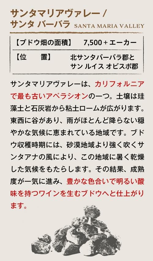 穏やかな果実味を備え程よい果実味と洗練された酸味、タンニンのバランスの良さが特徴的です。