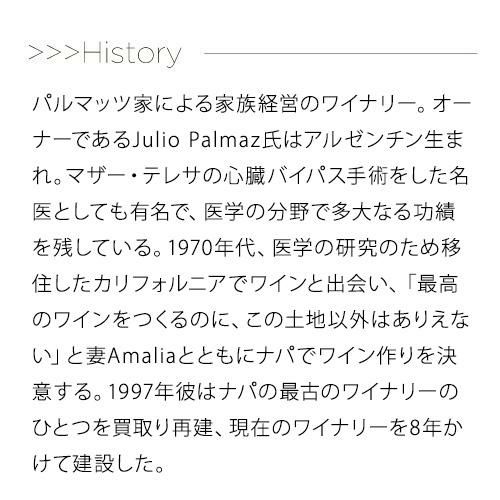 他の画像を見る クール便選択可 『ワイン王国』2023年11月 137号に掲載! 伝統と最新鋭が織りなす新世代ナパの傑作 パルマッツ ヴィンヤード カベルネ ソーヴィニヨン 2019 750mlアメリカ ナパ 雑誌 掲載 SHOKICHI ワイン王国 137号 ポスト オーパスワン 赤ワイン 辛口 浜運 特別価格 ¥ 41,800 税込 お気に入りに追加 在庫切れ