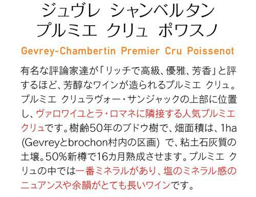 他の画像を見る クール便選択可 ジュヴレ シャンベルタン プルミエ クリュ ポワスノ 2017アンベール フレール 750mlフランス ブルゴーニュ 一級 ピノ ノワール 赤ワイン【クール便推奨】※通常便選択による液漏れ/劣化の返品交換不可 浜運 当店通常価格 オープン価格 特別価格 ¥ 23,100 税込 お気に入りに追加
