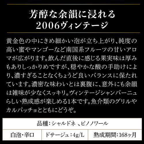 他の画像を見る クール便選択可 芳醇な余韻に浸れる2006ヴィンテージ インフィニット エイトエクストラ ブリュット [2006] 750ml正規品 シャンパン 高級シャンパン シャンパーニュ 映え 浜運A 特別価格 ¥ 19,800 税込 お気に入りに追加