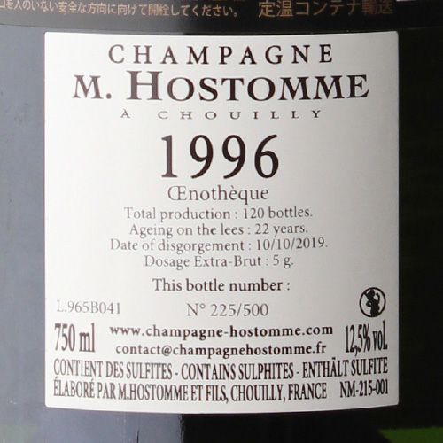 Champagne Oenotheque M.Hostomme 1996