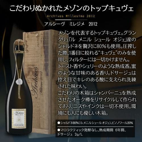 コラール ピカール アルシーヴ 2012 BOX 箱付 木箱 ミレジメ ミレジム ヴィンテージ 750ml 辛口 シャンパン シャンパーニュ 浜運