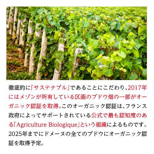 新鮮な赤い果実とほのかなブリオッシュが香り立つ。はじけるブラックチェリーを感じるエレガントな味わい。パワフルでありながら圧倒的に繊細な余韻が驚くほど長く続くフィニッシュへ向かう。