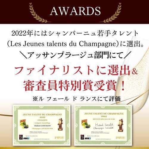 登竜門であるシャンパーニュ若手タレント2022(Les Jeunes talents du Champagne)に選出され、審査員特別賞を受賞。ギド アシェット誌2023でも★★星を獲得した今注目の造り手。アヴィズには畑を所有していませんが、メゾンはアヴィズを拠点としており、シャルドネの銘醸地とされる多数のグランクリュを所有しています。