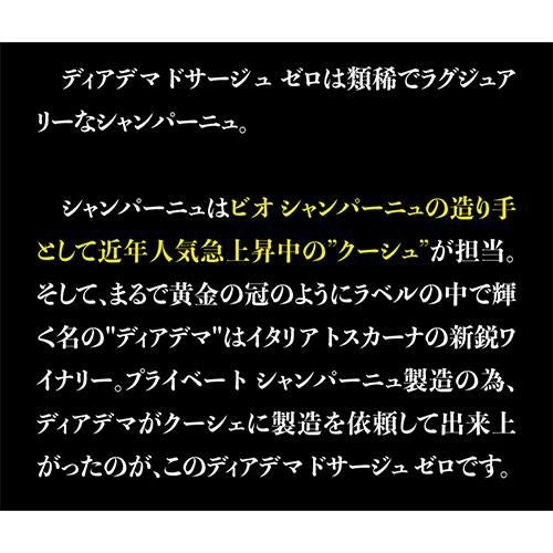 他の画像を見る クール便選択可 ディアデマ ドサージュ ゼロ NV 750ml BOX箱付 シャンパン シャンパーニュ 自然派ワイン ヴァンナチュール ビオディナミ スワロフスキー 浜運 メーカー希望小売価格 オープン価格 特別価格 ¥ 18,260 税込 お気に入りに追加 在庫切れ