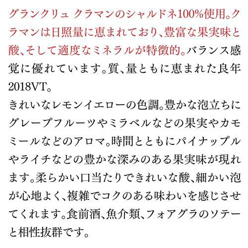 他の画像を見る クール便選択可 特級クラマンのシャルドネを贅沢に使用 シャンパーニュ ランスロ フィスル グロ モン グランクリュ クラマン 2020 750mlコート デ ブラン アヴィズ シャンパン 辛口 ブラン ド ブラン エクストラ ブリュット シャンパーニュ 浜運 特別価格 ¥ 16,500 税込 お気に入りに追加