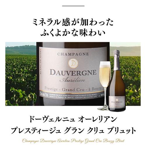 他の画像を見る クール便選択可 ミネラル感が加わったふくよかな味わい ドーヴェルニュオーレリアン プレスティージュ グラン クリュ ブリュット 750mlRC モンターニュ ド ランス ブジー シャンパン 辛口 シャンパーニュ 浜運 特別価格 ¥ 12,980 税込 お気に入りに追加