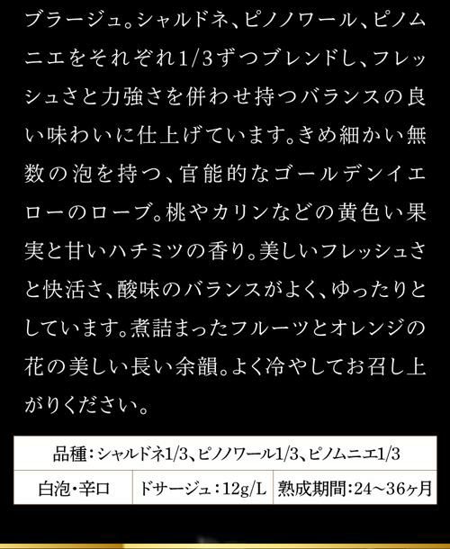 他の画像を見る クール便選択可 年間生産本数1,425本のグラン クリュ シャンパーニュ G.X. クロシェアブソリュー ド ブラン ブリュット グランクリュ ミレジメ 2016 750mlコート デ ブラン シャンパン 辛口 シャンパーニュ 虎 特別価格 ¥ 13,200 税込 お気に入りに追加 在庫切れ
