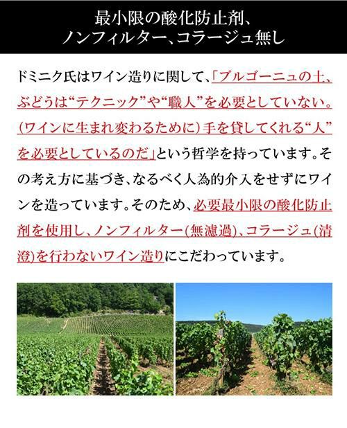 ブドウはリュリー、シャニー、ブーズロンから購入したもので、瓶内熟成15ヵ月を経たのちに瓶詰めしています。泡のイメージはあまりないドミニク ローランですが、樽発行熟成の代名詞でもあるエグリ ウーリエの原酒熟成用に樽を提供するなど、シャンパーニュの造り手とも交流しています。