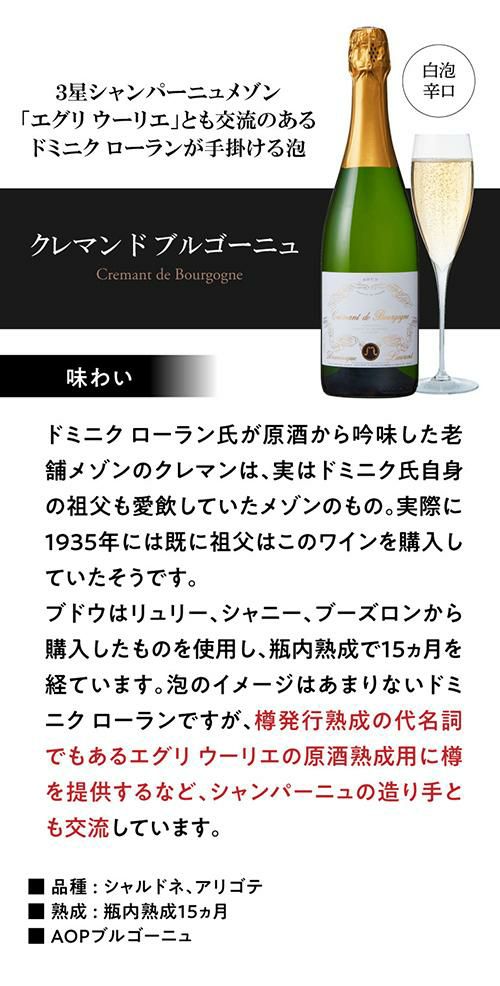クレマン ド ブルゴーニュドミニク ローラン 750ml 正規品 フランス ブルゴーニュ 白泡 辛口 ギフト スパークリングワイン 浜運