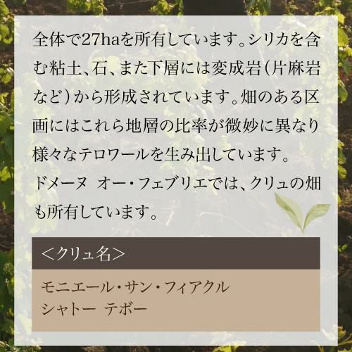 他の画像を見る クール便選択可 最良区画のブドウのみを使用したミュスカデ ミュスカデ セーヴル エ メーヌ モニエール サン フィアクル 2018 ドメーヌ オー フェブリエ 750ml フランス ロワール 白ワイン 浜運A 特別価格 ¥ 5,500 税込 お気に入りに追加 在庫切れ