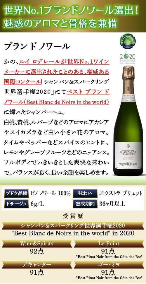他の画像を見る クール便選択可 サクラアワード2022ゴールド受賞レ・リセのテロワールを映すブラン・ド・ノワール ドメーヌ アレクサンドル ボネブラン ド ノワール エクストラ ブリュット 750mlコート デ バール シャンパン 辛口 シャンパーニュ 浜運 特別価格 ¥ 12,100 税込 お気に入りに追加