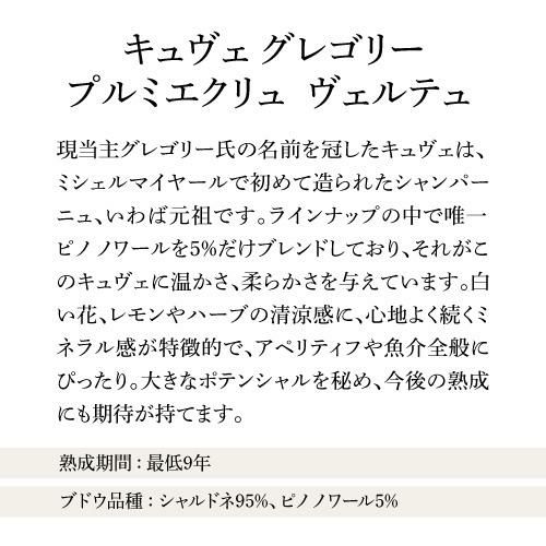 他の画像を見る クール便選択可 ミッシェル マイヤール キュヴェ グレゴリー プルミエクリュ 2005 750ml 辛口 シャンパン シャンパーニュ 浜運 メーカー希望小売価格 オープン価格 特別価格 ¥ 17,600 税込 お気に入りに追加