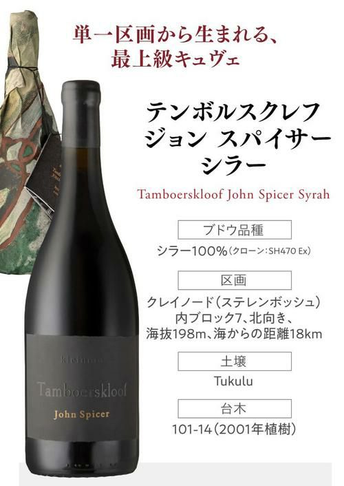テンボルスクレフ ジョン スパイサー シラー ステレンボッシュ 2018 クレイノード 750ml南アフリカ 辛口 アンティノリ 元醸造長 コンサル 単一畑 シラー 赤ワイン 浜運