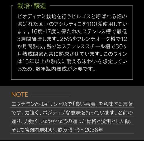 他の画像を見る クール便選択可 デキャンター2020でBEST IN SHOW獲得! サントリーニ キュヴェ エヴデモン [2020] エステート アルギロス 750ml ギリシャ アシルティコ 古木 白ワイン 浜運 特別価格 ¥ 13,420 税込 お気に入りに追加