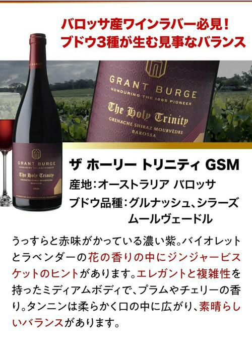 他の画像を見る クール便選択可 バロッサ産ワインラバー必見!ブドウ3種が見事にブレンド ザ ホーリー トリニティ GSM 2020グラント バージ 750mlオーストラリア バロッサ ヴァレー SA州 南オーストラリア州 グルナッシュ シラーズ ムールヴェードル 赤 辛口 浜運 特別価格 ¥ 7,700 税込 お気に入りに追加 在庫切れ