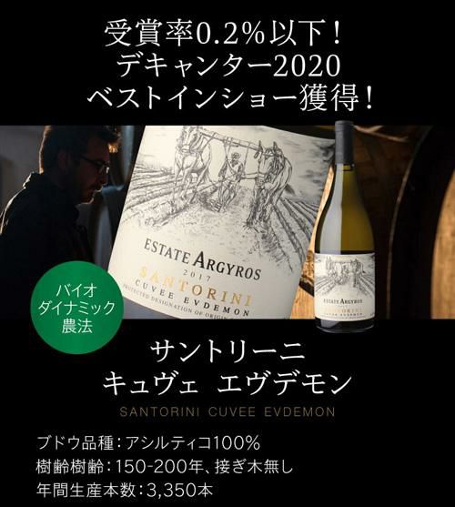 他の画像を見る クール便選択可 デキャンター2020でBEST IN SHOW獲得! サントリーニ キュヴェ エヴデモン [2020] エステート アルギロス 750ml ギリシャ アシルティコ 古木 白ワイン 浜運 特別価格 ¥ 13,420 税込 お気に入りに追加