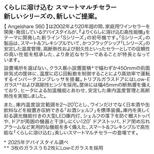 ワインセラー デバイスタイル エンジェルシェア S60 60本収納 コンプレッサー式 Angelshare 家庭用 業務用