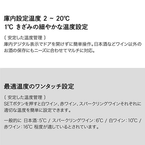 ●庫内温度は使用状態(周囲温度、設置環境、ドアの開閉、ワインの収納量など)よっては変わります。