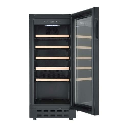 カウンター下などにも設置可能な33本収納の小型・前面放熱タイプ FJP-88GSは放熱を本体前面から行うことで、必要な放熱スペースを左右5mm、背面5mm、上部5mm(※)に抑えました。通常のワインセラーのように据え置きとしての使用はもちろん、カウンター下へビルトインとして設置することも可能です。※フォルスタージャパンの通常の製品に必要な放熱スペースは左右20mm、背面50mm、上部100mm 使いやすさとデザインを両立した木製飾り付きのスライドラック 棚はワインボトルを収納しやすく取り出しやすいうえ、デザイン性にも優れた木製棚飾り付きのスライドラック仕様となっています。ブラックのスタイリッシュなフレームと、ナチュラルカラーの木製飾りが美しいコントラストを生み出します。 ガラス扉にはサイドガードを搭載することで耐久性を向上 扉に使用されている強化ガラスは正面からの衝撃には強さを発揮しますが、側面からの衝撃に弱いという特性があります。そのためFJP-88GSにはサイドガードを搭載することでガラス扉の衝撃による強度を向上させています。 断熱性に優れたUV反射加工のLow-E複層ガラスを搭載 ガラス表面に特殊な膜をコーティングすることで段ネル性を高めたLow-E複層ガラス(3層)を搭載することで、ガラスを通じた庫内への熱の侵入を抑制します。またUV反射加工により紫外線からの影響も抑制します。 過酷な夏場でも安心の酷暑対応 過酷な夏場の周囲温度にも対応した使用環境38℃での安全性及び耐久性テストをクリアしています。(注記)過酷環境下で使用の場合は庫内温度が設定温度に下がらない場合があります。またコンプレッサモーター保護のため強制的に運転停止を行う場合があり周囲温度が下がると再運転を行います。 寒い冬場でも庫内温度の低下を抑制する加温ヒーター 外気温が低い冬場は庫内の温度が下がりすぎることも。FJP-88GSは加温ヒーター付きなので、過度な庫内温度の低下を抑制し、大切なワインを低温劣化から守ります。※加温ヒーターで上げられる庫内温度は周囲温度により異なります 庫内の温度上昇と湿度低下を抑制するファン式冷却方式 ファンモーターを使って加湿された冷気を循環させる方式であるファン式冷却方式を採用しています。これにより、庫内温度の最適化と、扉の開閉による庫内の温度上昇や湿度の低下を抑制しています。 温度変化によるワインへの刺激を最小限に抑える1温度タイプ 庫内を一定の温度で管理するのが1温度タイプのワインセラーです。1温度タイプは構造上、2温度タイプに比べて庫内の温度のバラつきが少なく温度変化が安定しているため、普段飲みのワインの品質をより確実に維持したい方や、長期熟成向きのワインをお持ちの方にお勧めです。 スライドラックの収納本数 ボルドータイプのボトルであれば、互い違いに並べることでラック1枚に5本収納できます。ブルゴーニュタイプのボトルであれば互い違いに並べることでラック1枚に3本収納できます。※スパークリングワインやシャンパーニュのボトルはスライドラックには収納できません。最下段に重ねて収納するか、スライドラックを間引くことで収納可能となります。 最下段の収納本数 最下段にはボルドータイプのボトルであれば最大8本収納可能です。ブルゴーニュボトルやスパークリングワインやシャンパーニュのボトルの場合は最大5本収納可能です。