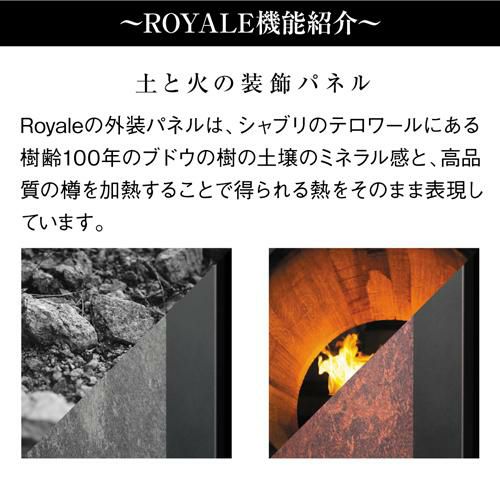Royaleの外装パネルは、シャブリのテロワールにある樹齢100年のブドウの樹の土壌のミネラル感と、高品質の樽を加熱することで得られる熱をそのまま表現しています。