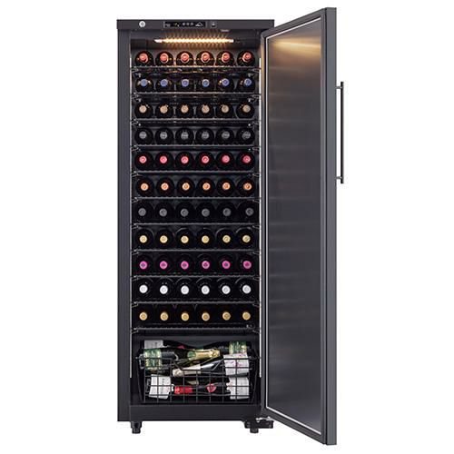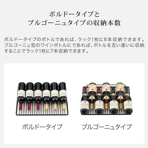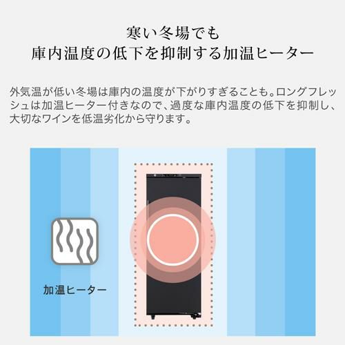 ハイスペックを身にまとった、進化し続ける伝統のフラッグシップモデル 「ロングフレッシュ」は、フォルスタージャパンのフラグシップシリーズで、プロフェッショナルや本格的なワインマニア向けの高品質な日本製ワインセラーです。ワイン保存に徹底的にこだわっており、ソムリエなどのプロフェッショナルから長年に渡って支持されています。 日本の国内工場で熟練工が一台一台を丁寧に組み立て ロングフレッシュシリーズのワインセラーは、日本国内の工場で熟練工が一台一台を丁寧に組み立てています。その高い品質はプロのワイン関係者からも評価されており、このシリーズの信頼性の礎となっています。また、安全性についても、日本のJET(一般財団法人電気安全環境研究所)の審査をクリアしています。 ※画像はイメージとなります。 ガラス扉よりも断熱性に優れた鋼板扉 鋼板扉はガラス扉に比べて断熱性に優れており消費電力量も低く省エネです。開閉頻度の少ない方や、ワインの長期保存用に適しています。 棚間隔を調整できる可変式ラックを搭載。最下段には日本酒を立てて保管することも可能 庫内のガイドレール上のフックを調整することで棚間隔を細かく変更することができます。最下段のスペースを広めにとり、付属のカゴを外すことで日本酒の一升瓶や四合瓶を立てて保管することが出来ます。ロングフレッシュは設定可能温度が6℃~20℃のため、日本酒の雪冷え(6℃程度)、花冷え(10℃程度)、涼冷え(15℃程度)のいずれにも対応可能です。 視認性を高めるリバーシブル傾斜ラックを標準装備 庫内のガイドレール上のフックの調整と標準装備のラックを前後反転することで、傾斜ラックとして使用できます。全てのラックを傾斜ラックにした場合、最大収納本数はボルドーボトル換算で最大48本となります。 ※画像はST-209Gとなります。 過酷な夏場の周囲温度にも対応 過酷な夏場の周囲温度にも対応した使用環境35℃の安全規格のテストをクリアしています。 寒い冬場でも庫内温度の低下を抑制する加温ヒーター 外気温が低い冬場は庫内の温度が下がりすぎることも。ロングフレッシュは加温ヒーター付きなので、過度な庫内温度の低下を抑制し、大切なワインを低温劣化から守ります。 省エネ性能をプラスした環境配慮のインバーターセラー インバーターコンプレッサーは周囲の状況に応じて、時にはパワフルに、時にはやさしく効率的に冷却に必要な回転数を制御するため、エネルギー費の高騰が叫ばれている現在において、省エネ性と静音に効果を発揮します。 省エネ性に加えて低振動も実現 ワイン貯蔵の際にはなるべく振動が少ないことが望まれますが、振動をより効果的に抑制することができるインバーターコンプレッサーを採用することで、ワインへの影響を最小限に抑えています。 庫内の温度上昇と湿度低下を抑制するファン式冷却方式 ファンモーターを使って加湿された冷気を循環させる方式であるファン式冷却方式を採用しています。 これにより、庫内温度の最適化と、扉の開閉による庫内の温度上昇や湿度の低下を抑制します。 温度変化によるワインへの刺激を最小限に抑える1温度タイプ 庫内を一定の温度で管理するのが1温度タイプのワインセラーです。 1温度タイプは構造上、2温度タイプに比べて庫内の温度のバラつきが少なく温度変化が安定しているため、普段飲みのワインの品質をより確実に維持したい方や、長期熟成向きのワインをお持ちの方にお勧めです。 ボルドータイプとブルゴーニュタイプの収納本数 ボルドータイプのボトルであれば、ラック1枚に6本収納できます。ブルゴーニュ型のワインボトルにであれば、ボトルを互い違いに収納することでラック1枚に7本収納できます。