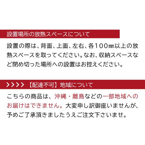 ●設置の際は、背面100mm以上、左右各100mm以上、上面100mm以上の放熱スペースを取ってください。