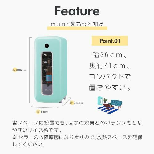 muni ムニ nami 波 ナミ FS-52LA ライトブルー ワインセラー 12本 コンプレッサー式 家庭用 業務用