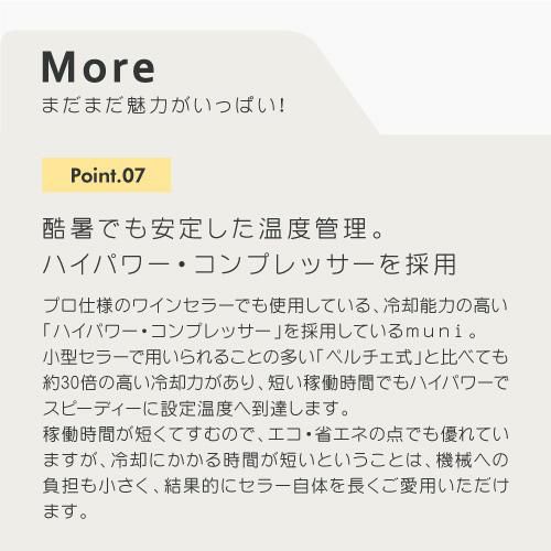 ●庫内温度は使用状態(周囲温度、設置環境、ドアの開閉、ワインの収納量など)よっては変わります。
