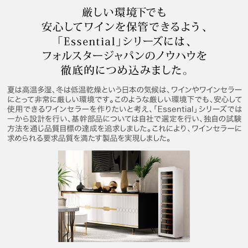 細部まで品質とデザインにこだわり抜いたフォルスターの新型ワインセラー「Essential 」シリーズ 「日本の気候や居住環境に適したワインセラーを世に出したい」。こんな思いからフォルスタージャパンの歴史は始まりました。 その本質的な原点に回帰し、自社主導の製品設計に加え、独自の厳格な試験方法により品質目標を達成し、安心してワインを保管できる信頼性を実現。 空間に調和するデザインや省エネ性の高いインバーターコンプレッサーの搭載など、ワインラヴァーの皆様に寄り添うワインセラー、それがフォルスタージャパンの「Essential(エッセンシャル)」シリーズです。 厳しい環境下でも安心してワインを保管できるよう、「Essential」シリーズには、フォルスタージャパンのノウハウを徹底的につめ込みました。 夏は高温多湿、冬は低温乾燥という日本の気候は、ワインやワインセラーにとって非常に厳しい環境です。このような厳しい環境下でも、安心して使用できるワインセラーを作りたいと考え、「Essential」シリーズでは一から設計を行い、基幹部品については自社で選定を行い、独自の試験方法を通じ品質目標の達成を追求しました。これにより、ワインセラーに求められる要求品質を満たす製品を実現しました。 丸みを帯びた角部分が特徴的なラウンドデザイン 扉面の角は丸みを帯びたラウンドデザインとなっています。これにより、ワインセラーにありがちな無骨な印象が和らぐと同時に、小さなお子様が角にぶつかってしまった際の怪我のリスクを低減します。また取っ手を設けないことでミニマルで洗練された外観を実現しました。 同等収納本数の主要ワインセラーの中で最薄レベルの奥行 奥行を482mmに抑えることで、現在(2023年3月現在)販売されている収納本数44本クラスの主要なワインセラーの中で最薄レベルを実現しました。この設計により、ワインセラーを部屋に設置した際に前面にせり出してくる部分が少なく、他の家具とのバランスを崩すことなく部屋全体の調和を保つことができます。 暖かな印象を与える木製の棚飾りを採用 デザインとしても人気があり、見る人に暖かな印象を与える木製棚飾りを採用しました。FJE-113GS(BK)の棚には濃い色味の木材を、FJE-113GS(WH)の棚には薄い色味の木材を採用することで、デザインの統一感を演出しました。 庫内を両サイドから照らすバータイプのLED照明 庫内手前側の両サイドに配置されたバータイプのLED照明が、自慢のワインコレクションを美しく照らし出します。FJE-113GS(BK)には暖色系のLEDを、FJE-113GS(WH)には寒色系のLEDを搭載することで、デザインの統一感を演出しました。 扉だけでなく本体部分も白いFJE-113GS(WH) 多くのホワイト系のワインセラーが、扉だけが白く、本体部分は黒いというデザインになっていますが、FJE-113GS(WH)は本体部分も白くすることで、日本の住環境に合わせたホワイト調の壁紙とも調和するデザインに仕上げました。 使い勝手の良い広めの棚間隔 ワインセラーの使い勝手を大きく左右する棚間隔については、太めのワインボトルもストレスなく出し入れできるよう、FJE-113GSでは100mmの棚間隔を確保しました。(※間口部分は約80mm程度) 力を入れずにスムーズに出し入れができる金属レールスライドラック 金属レール式のスライドラックを採用することで、力を入れずにスムーズにラックを出し入れすることができるだけでなく、ワインボトルのラベルをより見やすくしました。広めの棚間隔との組み合わせによって、ワインの出し入れがより簡単になり、使い勝手が大幅に向上しました。 シンプルな外観と使いやすさを両立した扉デザイン FJE-113GSでは、シンプルな外観を実現するため、扉を開けるための取っ手や窪みがありません。代わりに、ドア上部を本体部分より若干高くすることで、指を引っかけられるデザインになっています。そのため、取っ手がなくても扉の開閉が容易であり、壁際に設置しても、壁とセラーの間の狭さから扉が開けづらく感じるということもありません。 扉の半開きを防止するオートクローズ機構 扉が半開きになった状態で長時間放置すると、ワインにダメージを与える可能性があります。そのため、FJE-113GSには下部のヒンジ部分に扉のオートクローズ機能が搭載されており、扉を閉め忘れた場合でも自動的に閉まるようになっています。(※オートクローズ機構により、扉が半開きになることを100%防止するものではありません) 省エネ性能をプラスした環境配慮のインバーターセラー インバーターコンプレッサーは周囲の状況に応じて、時にはパワフルに、時にはやさしく効率的に冷却に必要な回転数を制御するため、エネルギー費の高騰が叫ばれている現在において、省エネ性と静音に効果を発揮します。 庫内の温度上昇と湿度低下を抑制するファン式冷却方式 ファンモーターを使って加湿された冷気を循環させる方式であるファン式冷却方式を採用しています。これにより、庫内温度