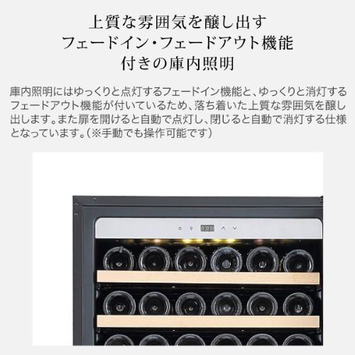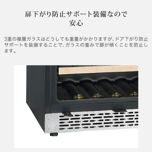 シンプルでスタイリッシュなガラス扉に安全性の高いサイドガードを搭載 スタイリッシュな外観デザインは、モダンなシステムキッチンや、オープンキッチンのレストランにもしっくり馴染みます。また、横からの衝撃に弱いガラス扉の耐久性を高めるために、サイドガードを搭載することで安全性を高めました。 前面排気により放熱スペースを最小化することで、据え置きだけではなくビルトインも可能に FJP-321GSは放熱を本体前面から行うことで、必要な放熱スペースを左右5mm、背面5mm、上部5mm(※)に抑えました。通常のワインセラーのように据え置きとしての使用はもちろん、ビルトインとしても使用できます。(※フォルスタージャパンの通常の製品に必要な放熱スペースは左右20mm、背面50mm、上部100mm) 使いやすさと安全性を両立した木製飾り付きのレール式スライドラック 棚はワインボトルを収納しやすく取り出しやすいうえ、安全性にも優れたレール式のスライドラック仕様となっています。ブラックのスタイリッシュなフレームと、ナチュラルカラーの木製飾りが美しいコントラストを生み出します。 上質な雰囲気を醸し出すフェードイン・フェードアウト機能付きの庫内照明 庫内照明にはゆっくりと点灯するフェードイン機能と、ゆっくりと消灯するフェードアウト機能が付いているため、落ち着いた上質な雰囲気を醸し出します。また扉を空けると自動で点灯し、閉じると自動で消灯する仕様となっています。(※手動でも操作可能です) 過酷な夏場でも安心してワインを保管できる酷暑対応 過酷な夏場の周囲温度にも対応した使用環境38℃での安全性及び耐久性テストをクリアしています。 寒い冬場でも庫内温度の低下を抑制する加温ヒーター 外気温が低い冬場は庫内の温度が下がりすぎることも。FJP-321GSは加温ヒーター付きなので、過度な庫内温度の低下を抑制し、大切なワインを低温劣化から守ります。(※加温ヒーターで上げられる庫内温度は最大でも外気温プラス4度程度となります) 庫内の温度上昇と湿度低下を抑制するファン式冷却方式 ファンモーターにより加湿冷気を強制循環させて温度や湿度管理に有効なファン式冷却方式を採用しています。また扉開閉時にはファンをモーターを停止させて外気流入をできる限り防ぎ庫内の温度上昇と湿度低下を抑制しています。 断熱性に優れたUV反射加工のLow-E複層ガラスを搭載 ガラス表面に特殊な膜をコーティングすることで断熱性を高めたLow-E複層ガラスを搭載することで、ガラスを通じた庫内への熱の侵入を抑制します。またUV反射加工により紫外線からの影響も抑制します。 温度変化によるワインへの刺激を最小限に抑える1温度タイプ 庫内を一定の温度で管理するのが1温度タイプのワインセラーです。1温度タイプは構造上、2温度タイプに比べて庫内の温度のバラつきが少なく温度変化が安定しているため、普段飲みのワインの品質をより確実に維持したい方や、長期熟成向きのワインをお持ちの方にお勧めです。 扉下がり防止サポート装備なので安心 3重の複層ガラスはどうしても重量がかかりますが、ドア下がり防止サポートを装備することで、ガラスの重みで扉が傾くことを防止します。 ボルドータイプとブルゴーニュタイプの収納本数 ボルドータイプのボトルであれば、ラック1枚に11本収納できます。ブルゴーニュタイプのワインボトルであれば、ラック1枚に10本収納できます。