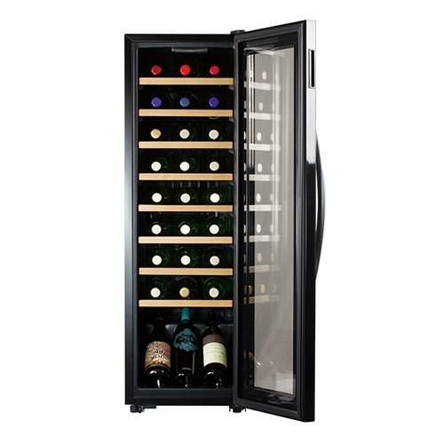 静粛性コンプレッサーを搭載することで“静けさ”と“協力な冷却能力”を両立。 寒い環境下でもワインの温度を一定に保つ“加温機能”装備 簡単なパネル操作で温度設定できます。 庫内を明るく照らすLED照明 簡単なパネル操作で温度設定できます。庫内を明るく照らすLED照明 収納本数27本最大で31本収納可能設定温度は6-18℃(1℃ステップ)。