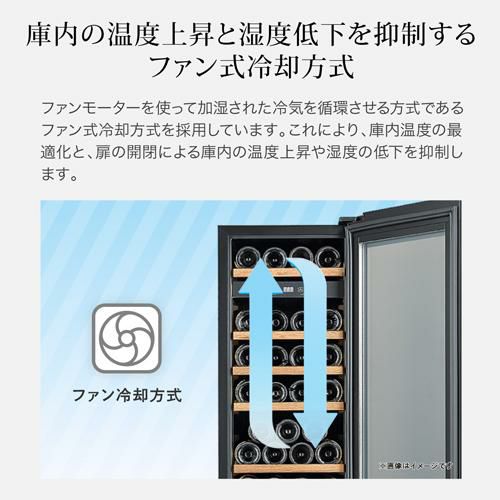 カウンター下などにも設置可能な33本収納の小型・前面放熱タイプ FJP-88GSは放熱を本体前面から行うことで、必要な放熱スペースを左右5mm、背面5mm、上部5mm(※)に抑えました。通常のワインセラーのように据え置きとしての使用はもちろん、カウンター下へビルトインとして設置することも可能です。※フォルスタージャパンの通常の製品に必要な放熱スペースは左右20mm、背面50mm、上部100mm 使いやすさとデザインを両立した木製飾り付きのスライドラック 棚はワインボトルを収納しやすく取り出しやすいうえ、デザイン性にも優れた木製棚飾り付きのスライドラック仕様となっています。ブラックのスタイリッシュなフレームと、ナチュラルカラーの木製飾りが美しいコントラストを生み出します。 ガラス扉にはサイドガードを搭載することで耐久性を向上 扉に使用されている強化ガラスは正面からの衝撃には強さを発揮しますが、側面からの衝撃に弱いという特性があります。そのためFJP-88GSにはサイドガードを搭載することでガラス扉の衝撃による強度を向上させています。 断熱性に優れたUV反射加工のLow-E複層ガラスを搭載 ガラス表面に特殊な膜をコーティングすることで段ネル性を高めたLow-E複層ガラス(3層)を搭載することで、ガラスを通じた庫内への熱の侵入を抑制します。またUV反射加工により紫外線からの影響も抑制します。 過酷な夏場でも安心の酷暑対応 過酷な夏場の周囲温度にも対応した使用環境38℃での安全性及び耐久性テストをクリアしています。(注記)過酷環境下で使用の場合は庫内温度が設定温度に下がらない場合があります。またコンプレッサモーター保護のため強制的に運転停止を行う場合があり周囲温度が下がると再運転を行います。 寒い冬場でも庫内温度の低下を抑制する加温ヒーター 外気温が低い冬場は庫内の温度が下がりすぎることも。FJP-88GSは加温ヒーター付きなので、過度な庫内温度の低下を抑制し、大切なワインを低温劣化から守ります。※加温ヒーターで上げられる庫内温度は周囲温度により異なります 庫内の温度上昇と湿度低下を抑制するファン式冷却方式 ファンモーターを使って加湿された冷気を循環させる方式であるファン式冷却方式を採用しています。これにより、庫内温度の最適化と、扉の開閉による庫内の温度上昇や湿度の低下を抑制しています。 温度変化によるワインへの刺激を最小限に抑える1温度タイプ 庫内を一定の温度で管理するのが1温度タイプのワインセラーです。1温度タイプは構造上、2温度タイプに比べて庫内の温度のバラつきが少なく温度変化が安定しているため、普段飲みのワインの品質をより確実に維持したい方や、長期熟成向きのワインをお持ちの方にお勧めです。 スライドラックの収納本数 ボルドータイプのボトルであれば、互い違いに並べることでラック1枚に5本収納できます。ブルゴーニュタイプのボトルであれば互い違いに並べることでラック1枚に3本収納できます。※スパークリングワインやシャンパーニュのボトルはスライドラックには収納できません。最下段に重ねて収納するか、スライドラックを間引くことで収納可能となります。 最下段の収納本数 最下段にはボルドータイプのボトルであれば最大8本収納可能です。ブルゴーニュボトルやスパークリングワインやシャンパーニュのボトルの場合は最大5本収納可能です。
