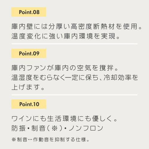 ●庫内温度は使用状態(周囲温度、設置環境、ドアの開閉、ワインの収納量など)よっては変わります。
