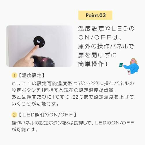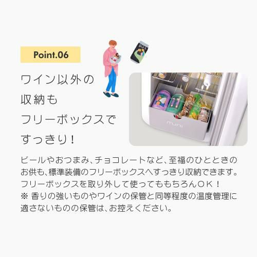●庫内温度は使用状態(周囲温度、設置環境、ドアの開閉、ワインの収納量など)よっては変わります。