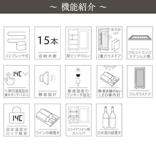 他の画像を見る コンパクトでありながら本格的なワインセラー デバイスタイル CG-C15S-K 本体カラー:ブラック 15本 送料無料 deviceSTYLE コンプレッサー式 家庭用 コンパクト 棚間広め メーカー希望小売価格 オープン価格 特別価格 ¥ 59,800 税込 お気に入りに追加