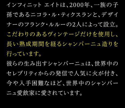 他の画像を見る デザートとの相性抜群のロゼ インフィニット エイトブリュット インフィニット ロゼ NV 750ml 正規品モンターニュ ド ランス シャンパン 辛口 シャルドネ ピノノワール ピノムニエ シャンパーニュ 虎 特別価格 ¥ 9,900 税込 お気に入りに追加