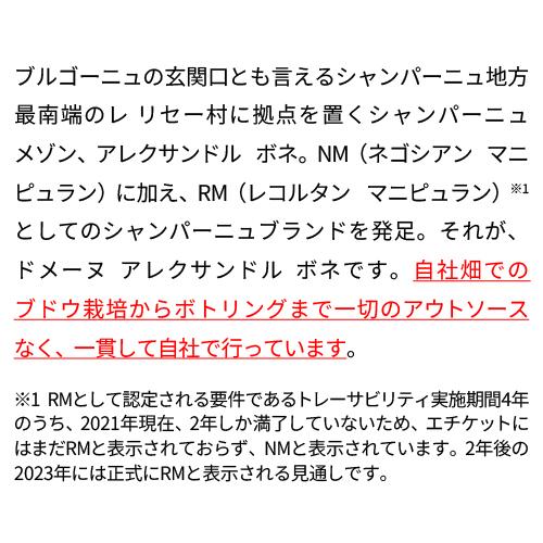 他の画像を見る サクラアワード2022ゴールド受賞レ・リセのテロワールを映すブラン・ド・ノワール ドメーヌ アレクサンドル ボネブラン ド ノワール エクストラ ブリュット 750mlコート デ バール シャンパン 辛口 シャンパーニュ 浜運 特別価格 ¥ 12,100 税込 お気に入りに追加